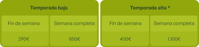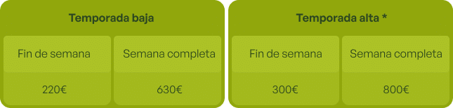 (*) Temporada alta: meses julio/agosto, puentes nacionales y Navidad